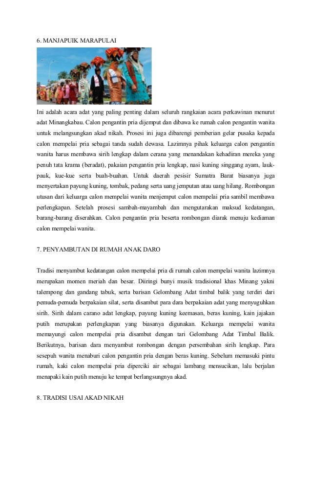 PDF) Revitalization of Manjapuik Marapulai Tradition in Minangkabau Marriage Customs | International Journal of Research & Review (IJRR) - Academia.edu