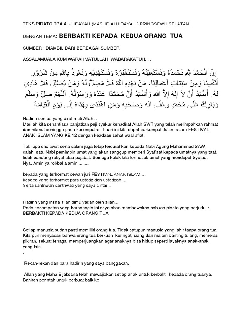 Pin di Teks pidato berbakti kepada orang tua