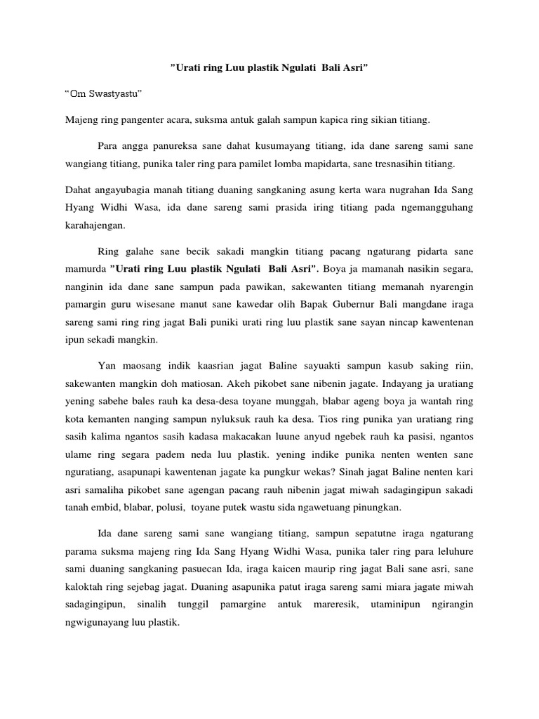 tolong buat pidato bahasa Bali tentang sampah sama pembukaannya - Brainly.co.id