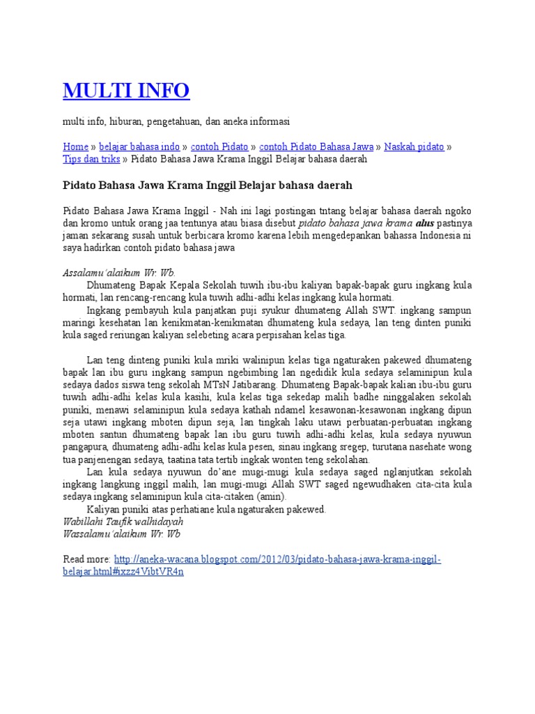 FULL] Contoh Teks Pidato Budi Pekerti Bahasa Jawa Krama Alus by cansazuring - issuu