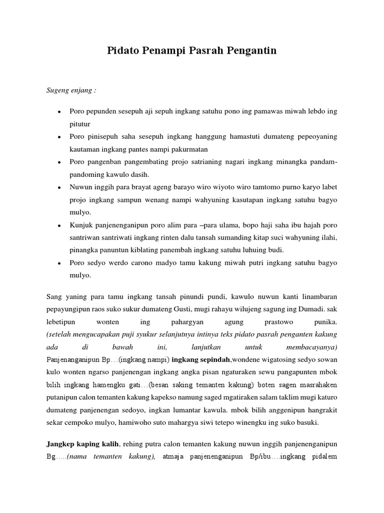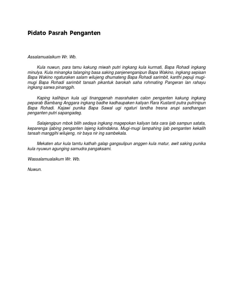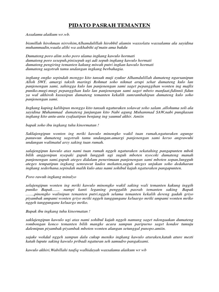 DOC) pidato bahasa jawa : pasrah temanten | Dyah Safira - Academia.edu