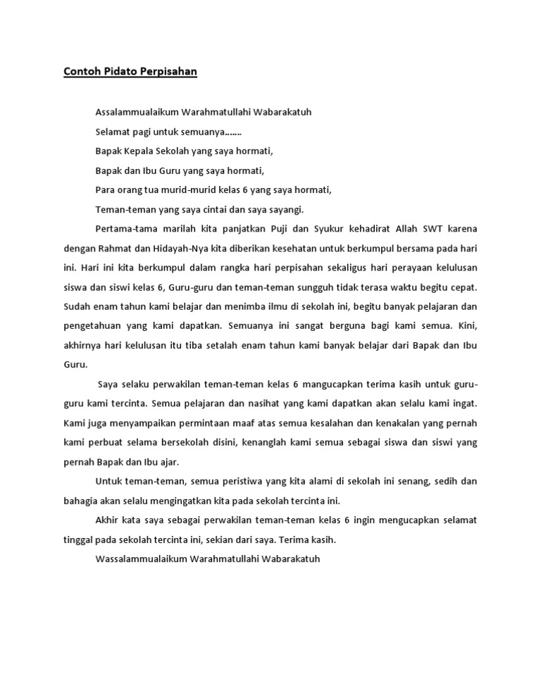 Pidato Perpisahan Kelas 6 Bahasa Indonesia