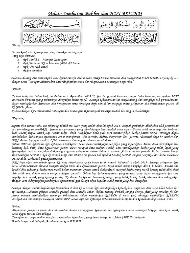 Contoh Kata Sambutan Ketua Panitia Buka Puasa Bersama | Contoh Soal Dan Materi Pelajaran 8