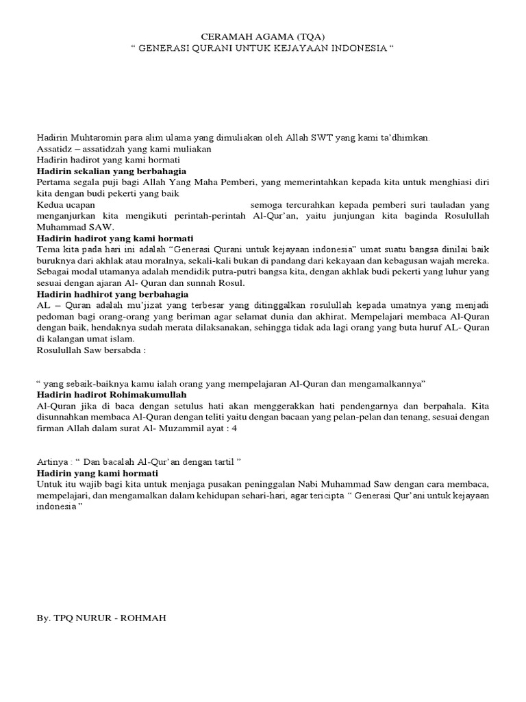 Pidato Generasi Qurani Untuk Kejayaan Indonesia