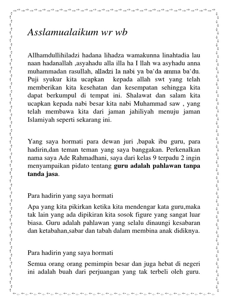 Pidato Guru Pahlawan Tanpa Tanda Jasa Lengkap