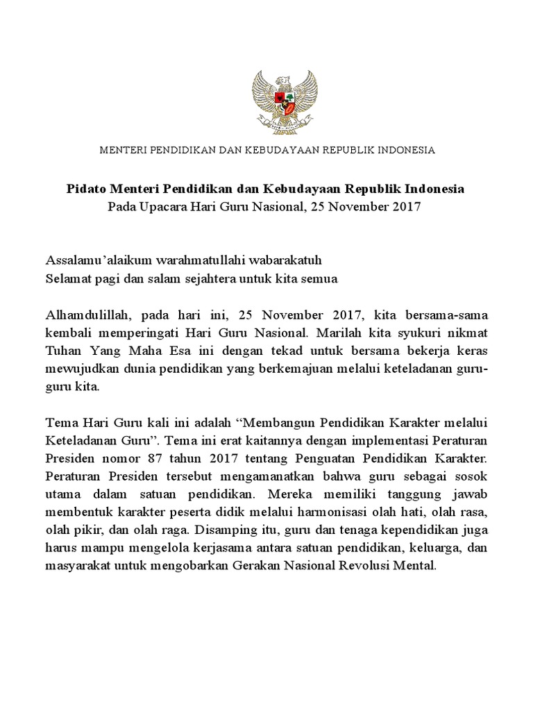 Pidato Mendikbud RI Pada Upacara Hari Guru Nasional 2017 | SITUS RESMI SMP NEGERI 1 KINTAP