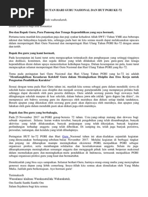 Download Pidato / Sambutan Upacara Hari Guru 2018 dan HUT PGRI Ke-73 - Dokumen Pengajaran Guru