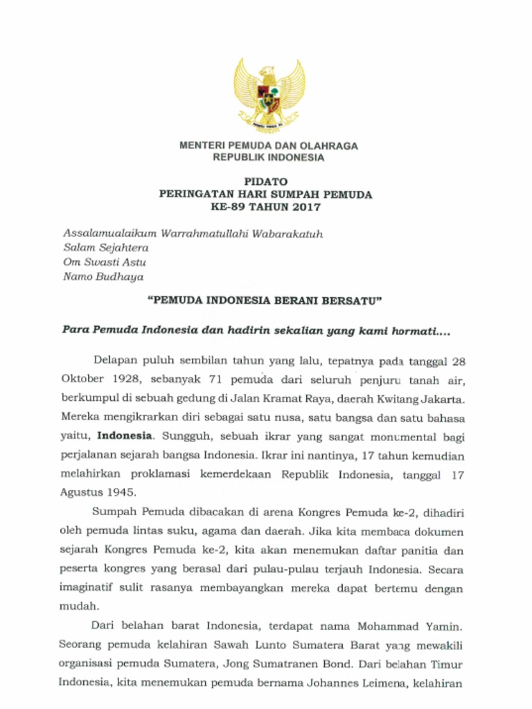 Pidato Hari Sumpah Pemuda Ke-90 Tahun 2018 Menpora - Dokumen …