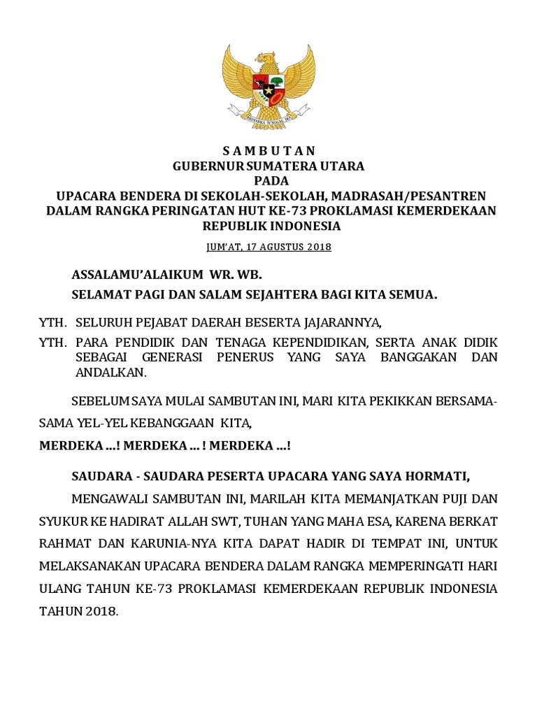 Download Contoh Pidato Upacara HUT RI Ke-73 Tahun 2018 - DAPODIK …