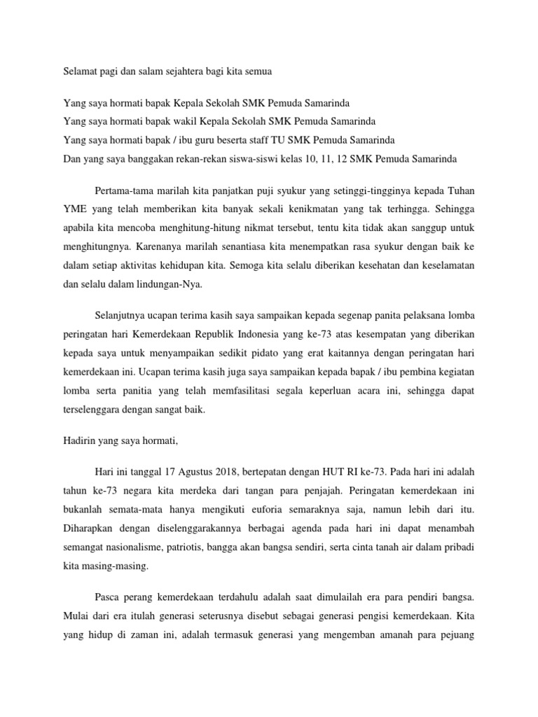 Contoh Pidato Kemerdekaan Ri Ke 73 | Blog Pendidikan