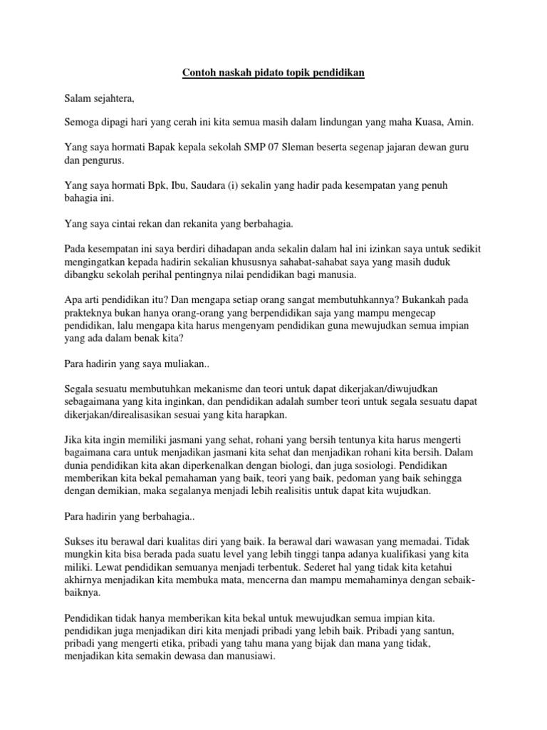 DOC) Contoh pidato singkat tentang lingkungan sekolah | Dhlie Razor - Academia.edu