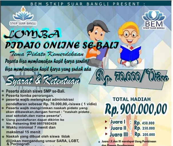 LOMBA PIDATO ONLINE DALAM RANGKA HUT STKIP SUAR BANGLI YANG KE-11 - Kelas Virtualku