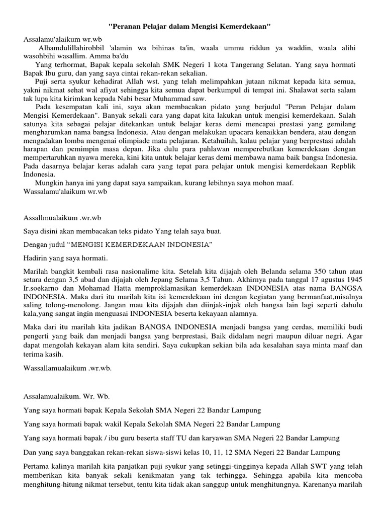 DOC) Pidato : Peranan Pelajar Terhadap Prestasi Bangsa | Wira Gapat - Academia.edu