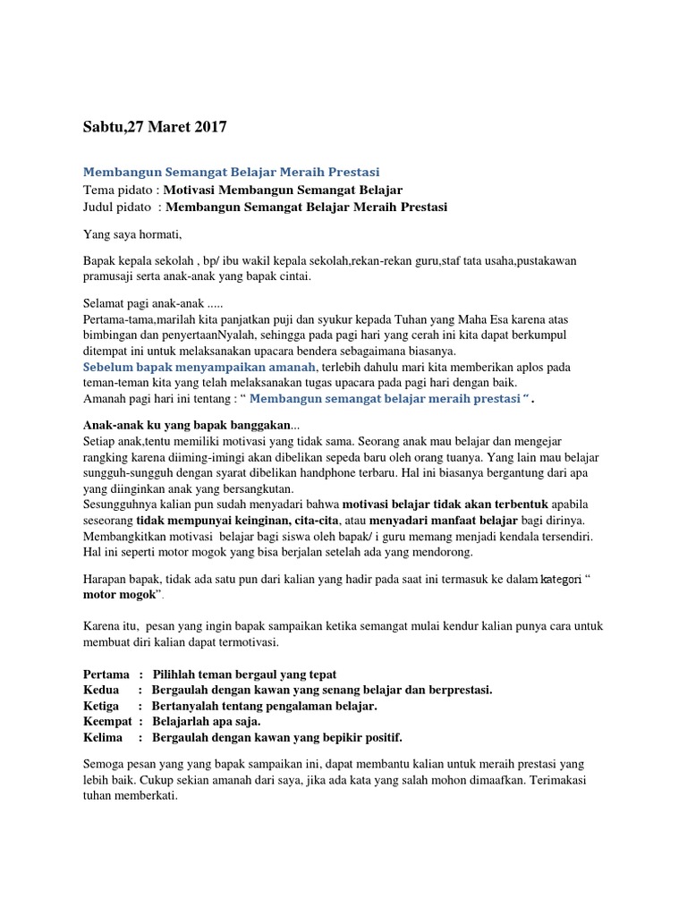 Contoh Pidato Pembina Upacara Tentang Motivasi Belajar - Guru Ilmu Sosial