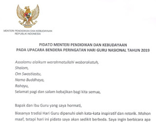 MerdekaBelajar on Twitter: “#SahabatDikbud, berikut pidato Mendikbud Nadiem Makarim pada upacara bendera peringatan Hari Guru Nasional 2019. Naskah pidato dapat diunduh di laman https://t.co/7Cp0fjWeWK. #HariGuruNasional #HGN2019 #MerdekaBelajar …