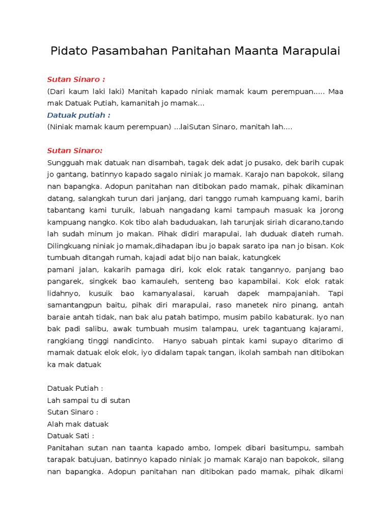 Pidato Pasambahan Panitahan Maanta Marapulai