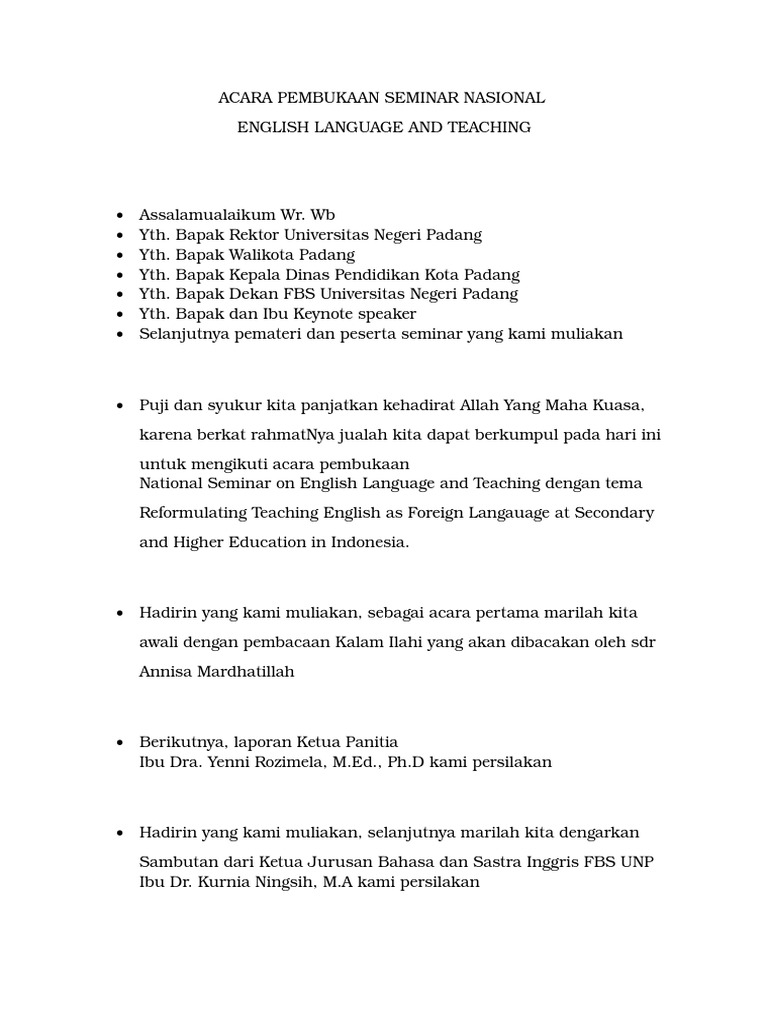 informasi data kendaraan riau: Contoh Kata Sambutan Pembukaan Acara Seminar