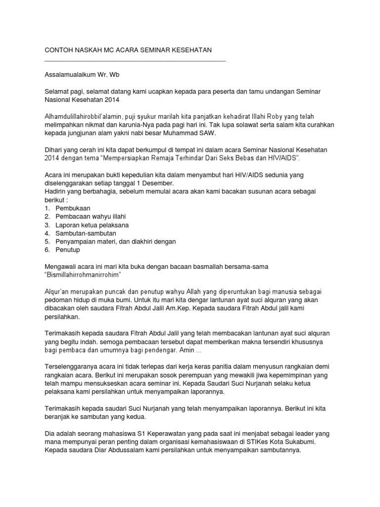 Contoh Naskah Mc Acara Seminar Kesehatan