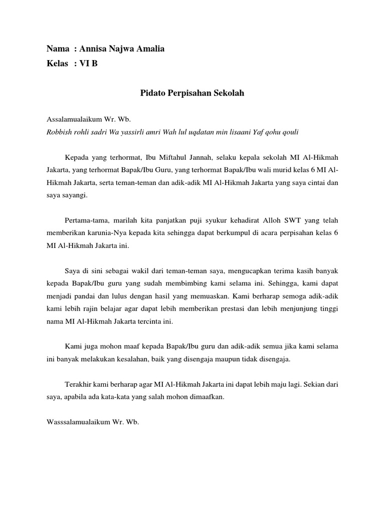 DOC) PIDATO PERPISAHAN KELAS 6 ANGKATAN XXIII | tika hidayat …