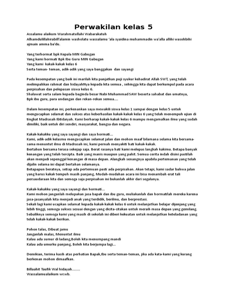 DOC) Pidato Perpisahan Kelas 6 | Charles Pardede - Academia.edu