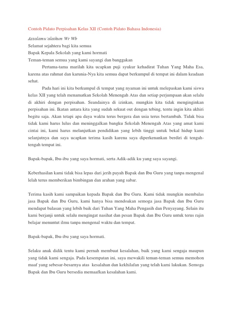 Contoh Pidato Perpisahan Siswa Kelas Xii | Sekolah, Teks, Kepala …