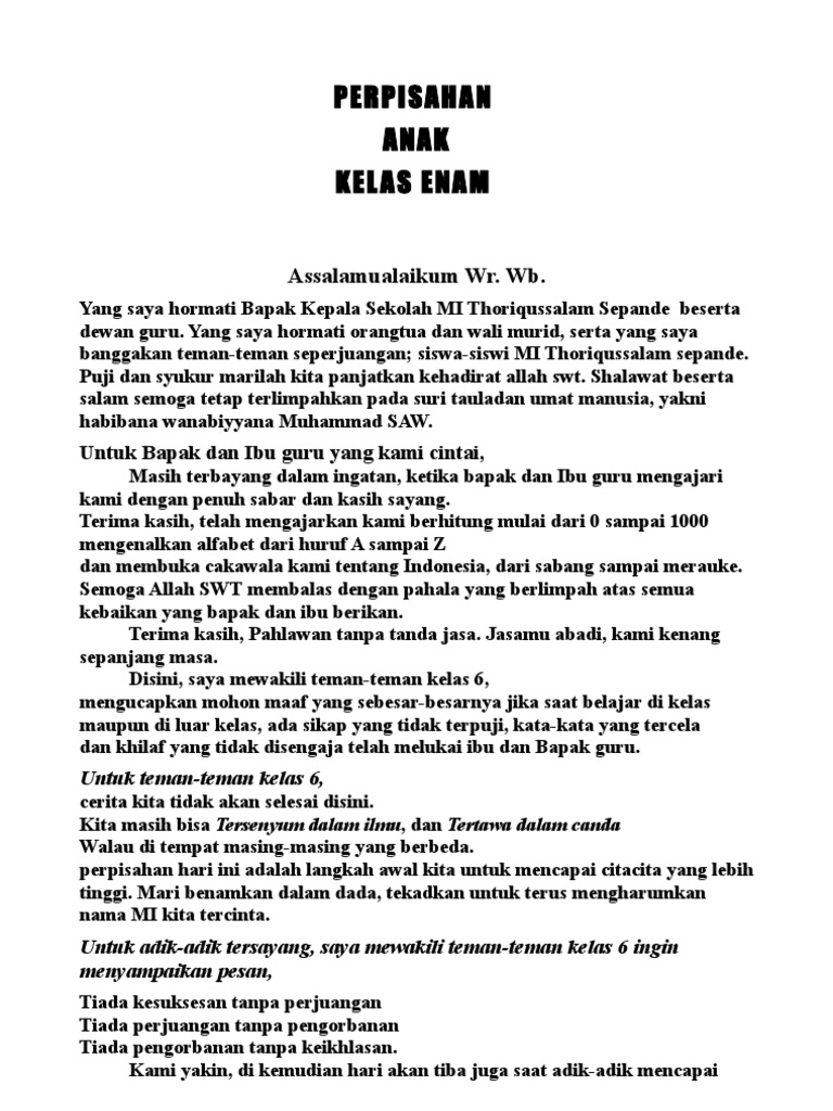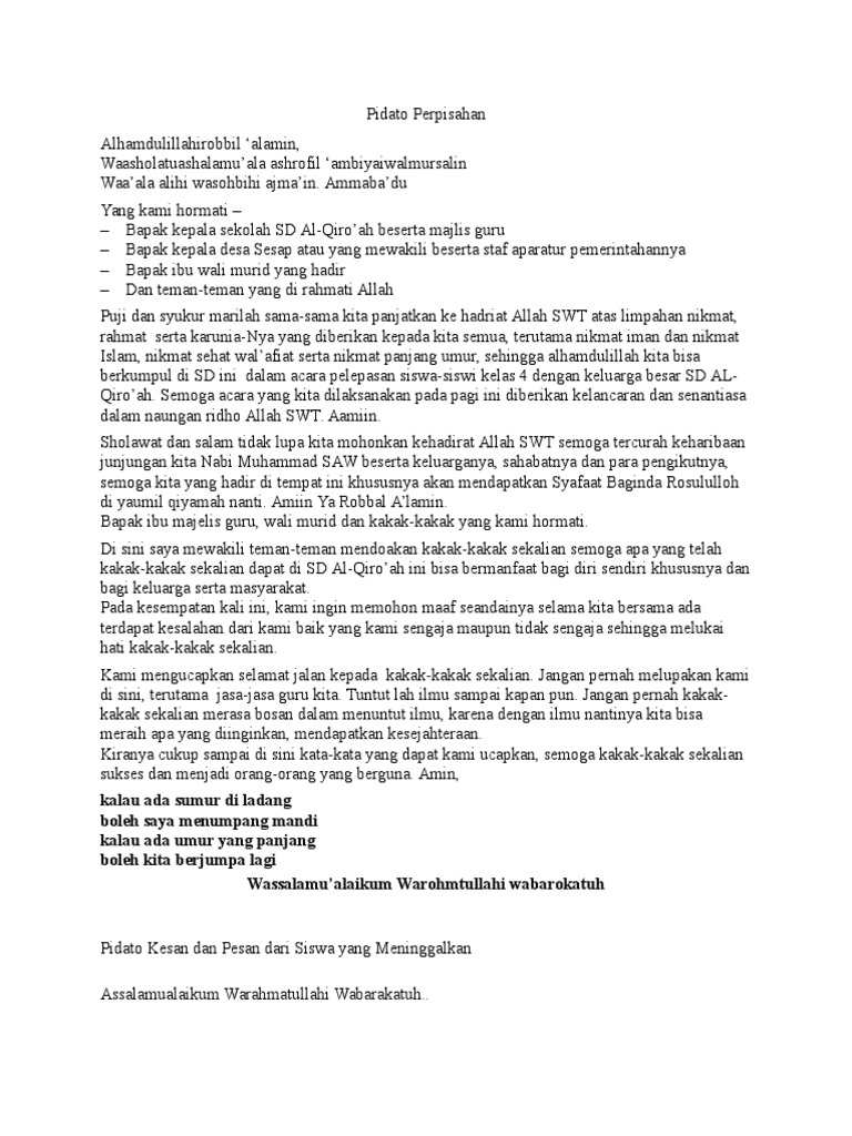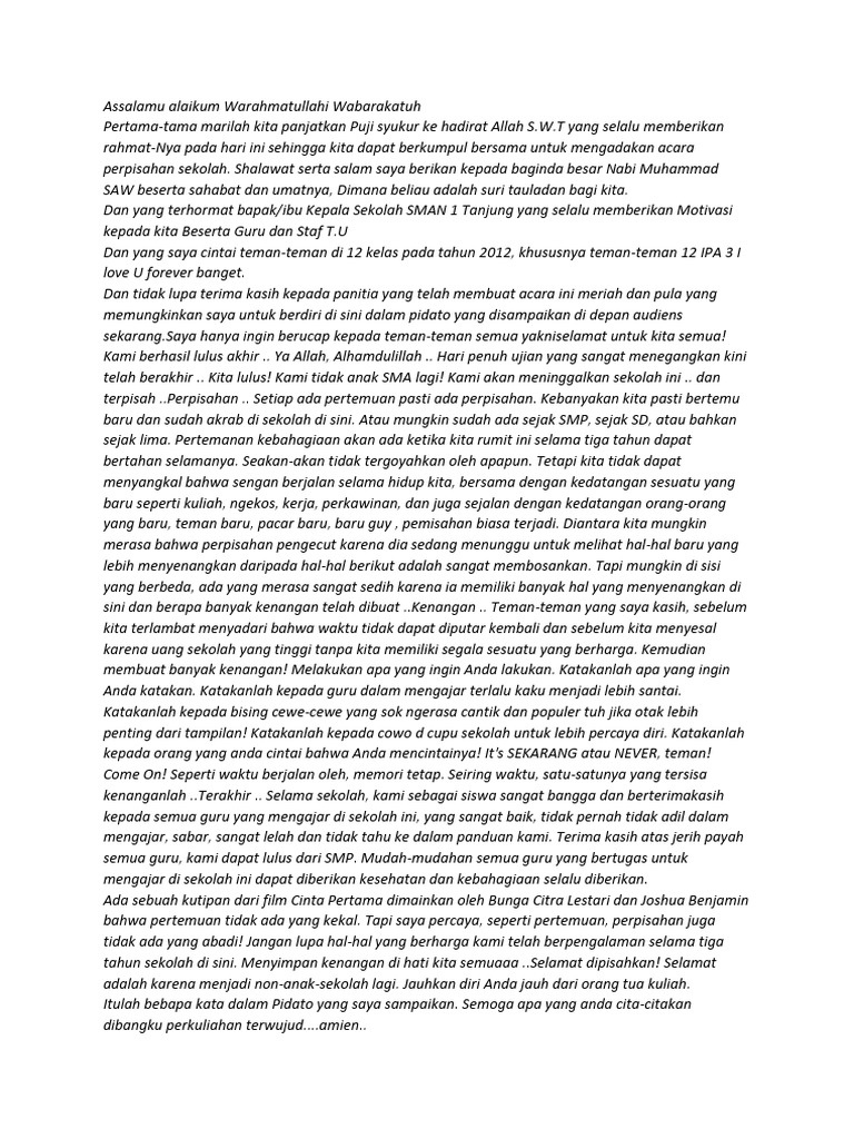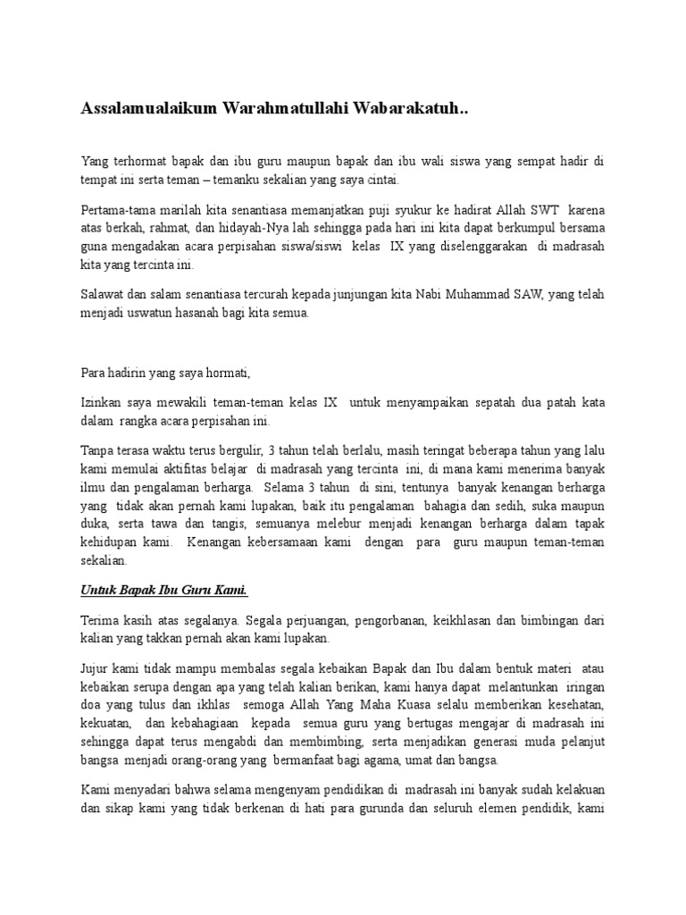DOC) Contoh Pidato atau Sambutan Perpisahan MTs/SMP | Gembel Pulsa - Academia.edu