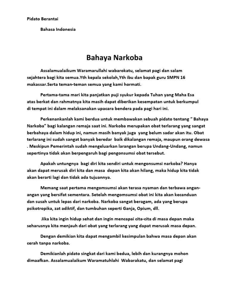 Contoh Naskah Pidato Singkat Berjudul Narkoba - Materibahasa.com