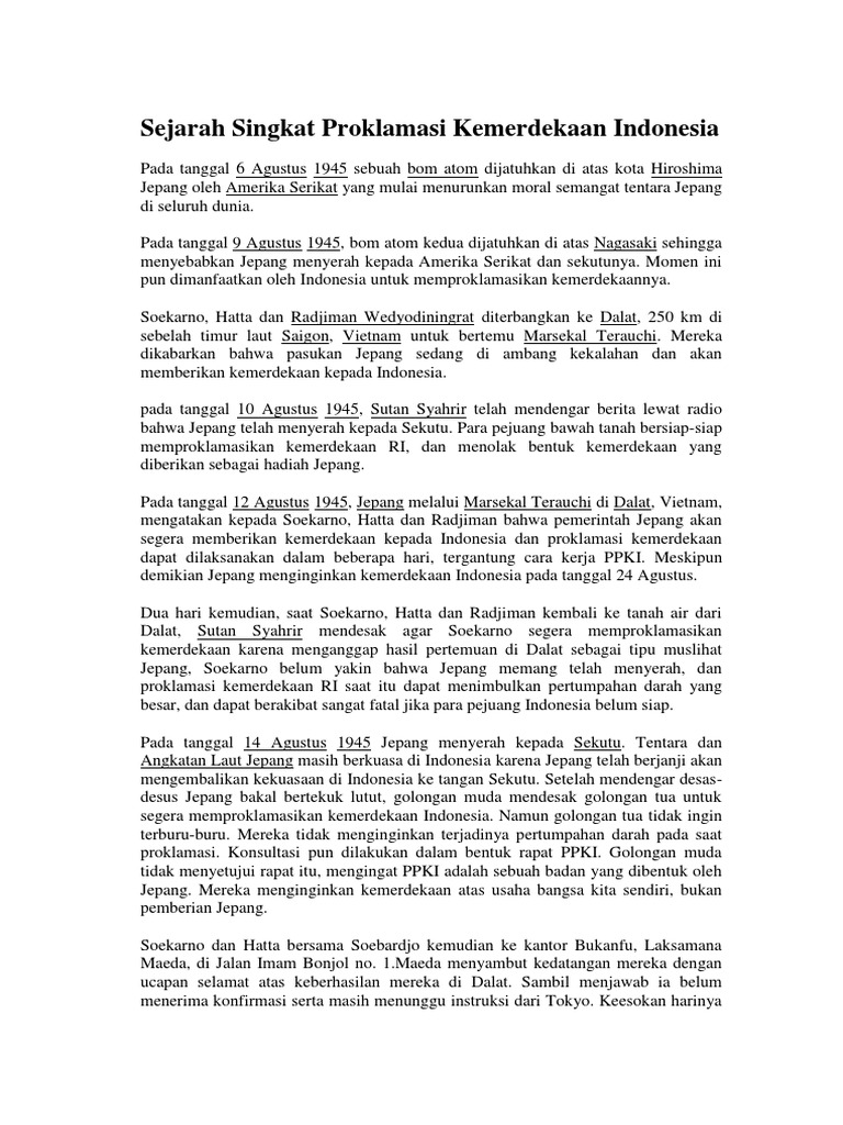 DOC) Sejarah Singkat Proklamasi Kemerdekaan Indonesia | Yati …
