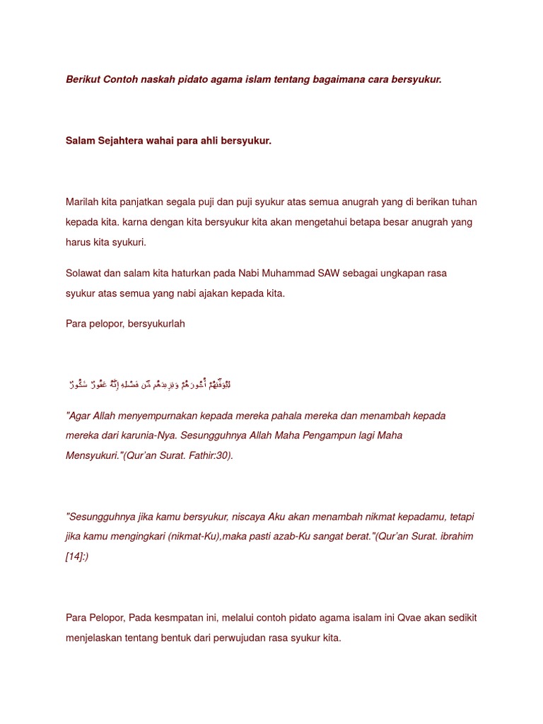 contoh soal dan contoh pidato lengkap : Contoh Teks Pidato Bahasa Arab Tentang Mensyukuri Nikmat Allah