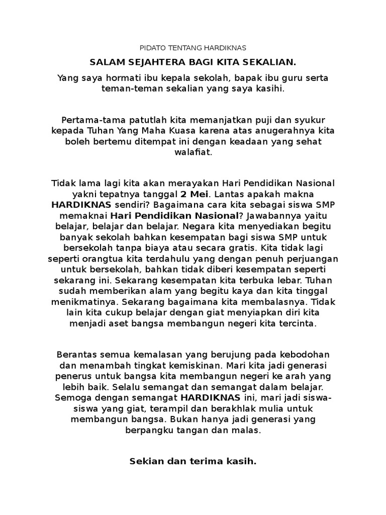DOC) Contoh Naskah Pidato Hari Pendidikan Nasional 2 | Muhamad Idris - Academia.edu