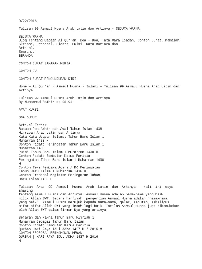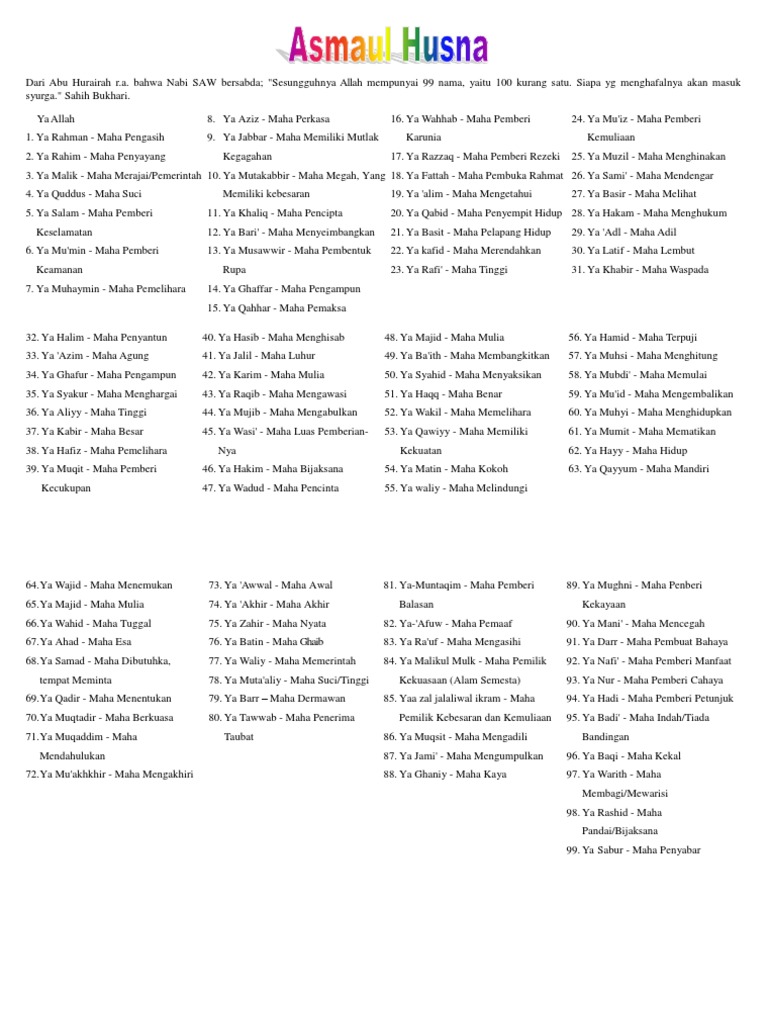 Tulisan 99 Asmaul Husna Arab Latin Dan Artinya - Sejuta Warna.pdf [14303wv2e94j]