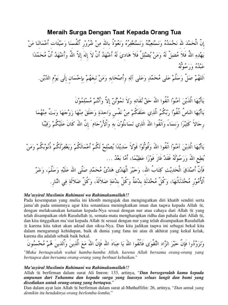 Pidato Bahasa Arab Tentang Berbakti Kepada Orang Tua [Cara Baca + …