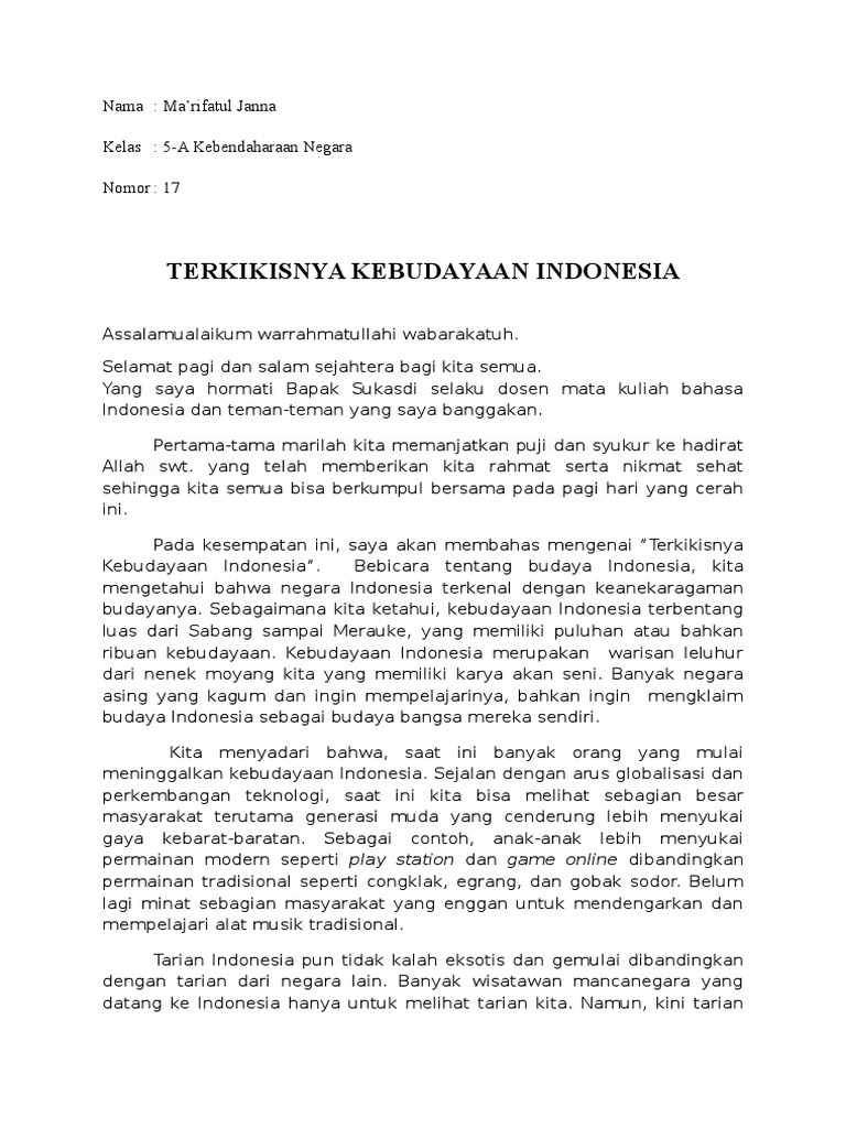 DOC) pidato tentang kebudayaan indonesia | Lina Alvi - Academia.edu