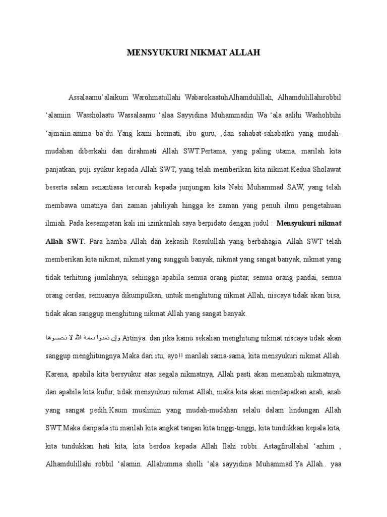 Contoh Teks Pidato Mensyukuri Nikmat Allah – retorika