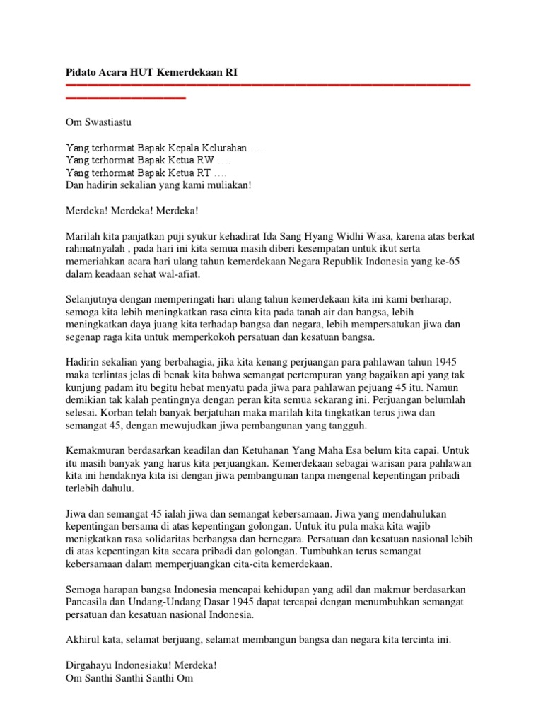 Pidato Acara HUT Kemerdekaan RI