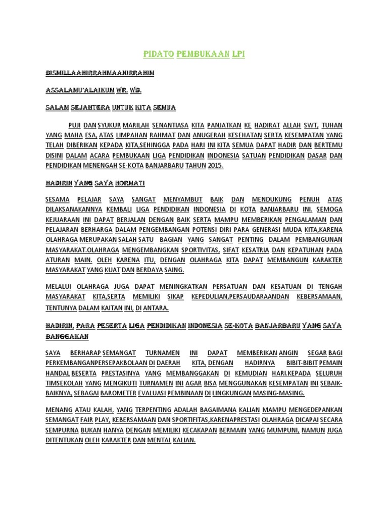 Pidato Pembukaan Lpi 1