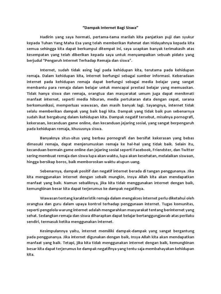 DOC) Kumpulan Pidato “Pengaruh Internet Terhadap Remaja” | Irma …