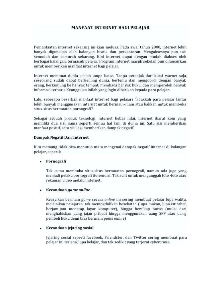 Dampak Positif Dan Negatif Warung Internet (Warnet) Bagi Pelajar …