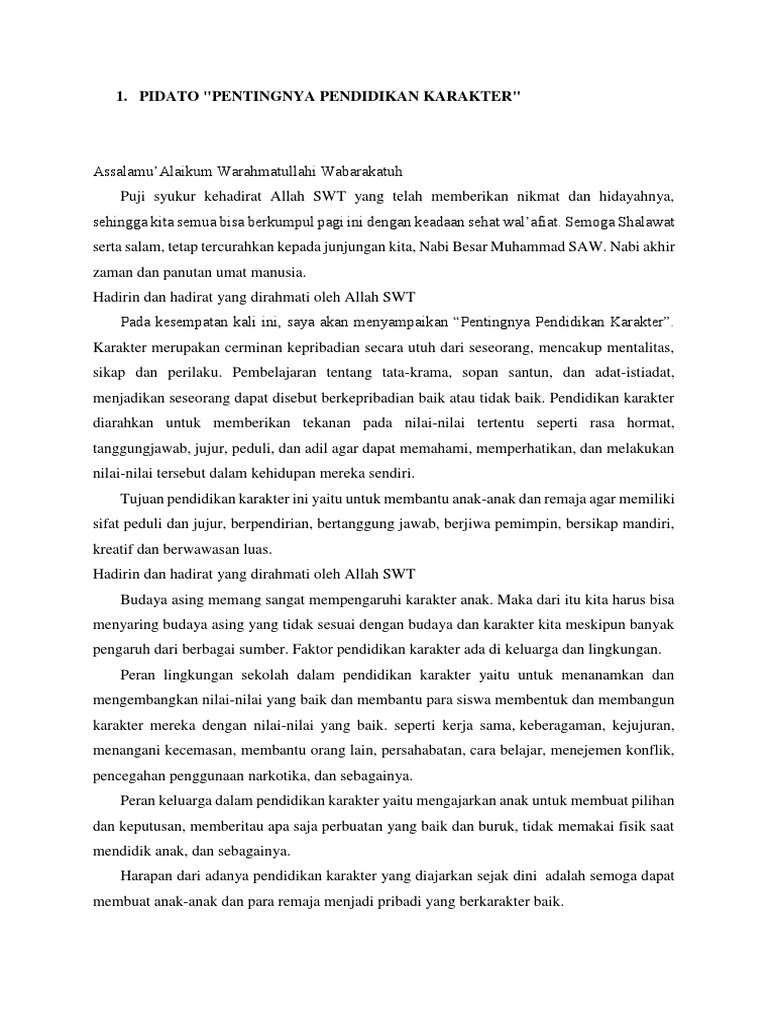 Contoh Pidato Bahasa Indonesia Dengan Tema Pentingnya Pendidikan Karakter Bagi Siswa Sd - [PDF Document]