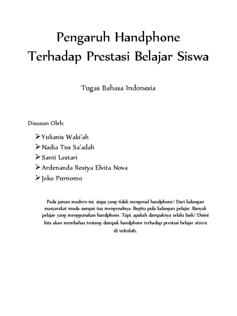 PDF) PENGARUH PENGGUNAAN HANDPHONE TERHADAP PRESTASI BELAJAR BAHASA INDONESIA SISWA