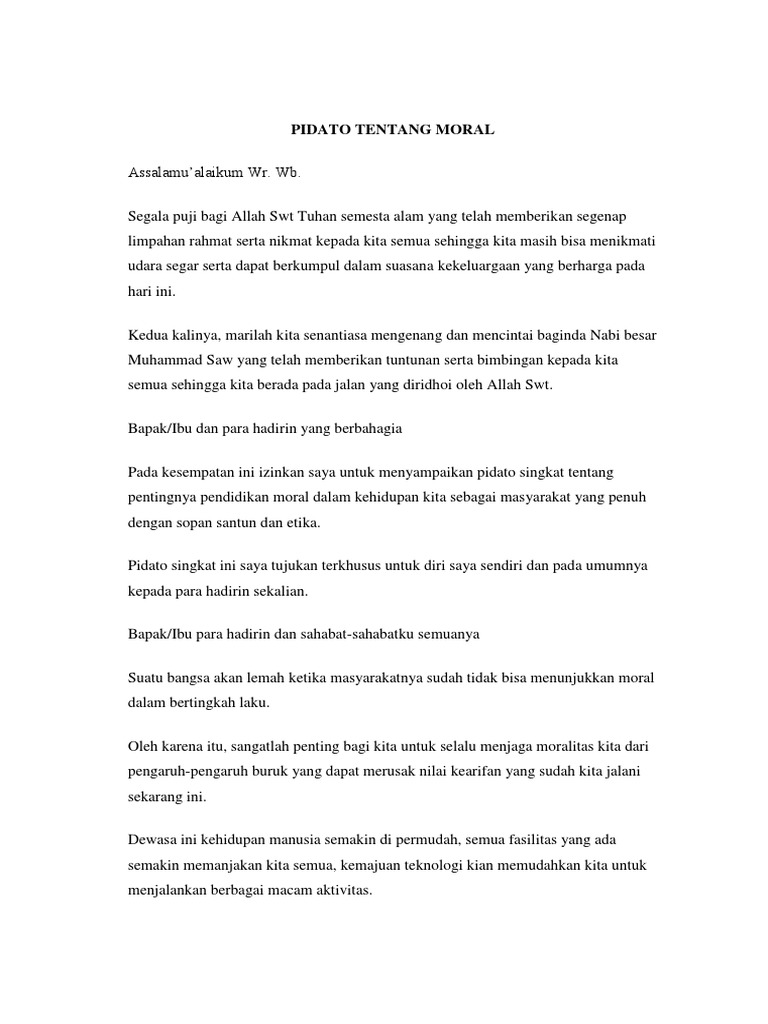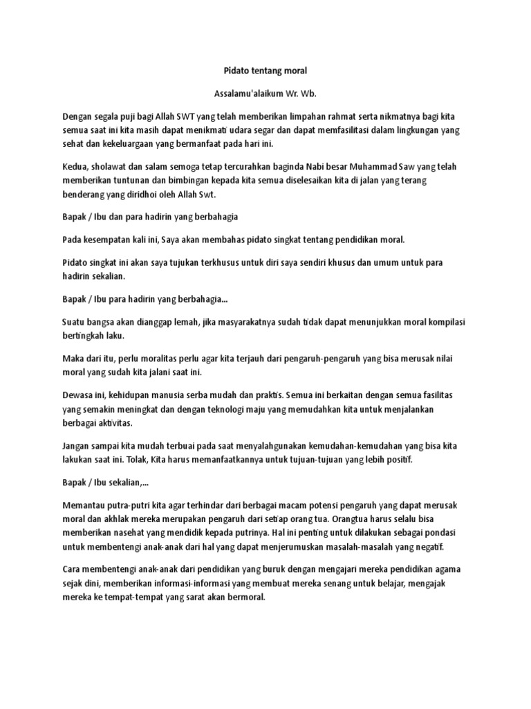 DOC) Naskah Teks Pidato Pentingnya Pendidikan Moral | CBC Syarif …