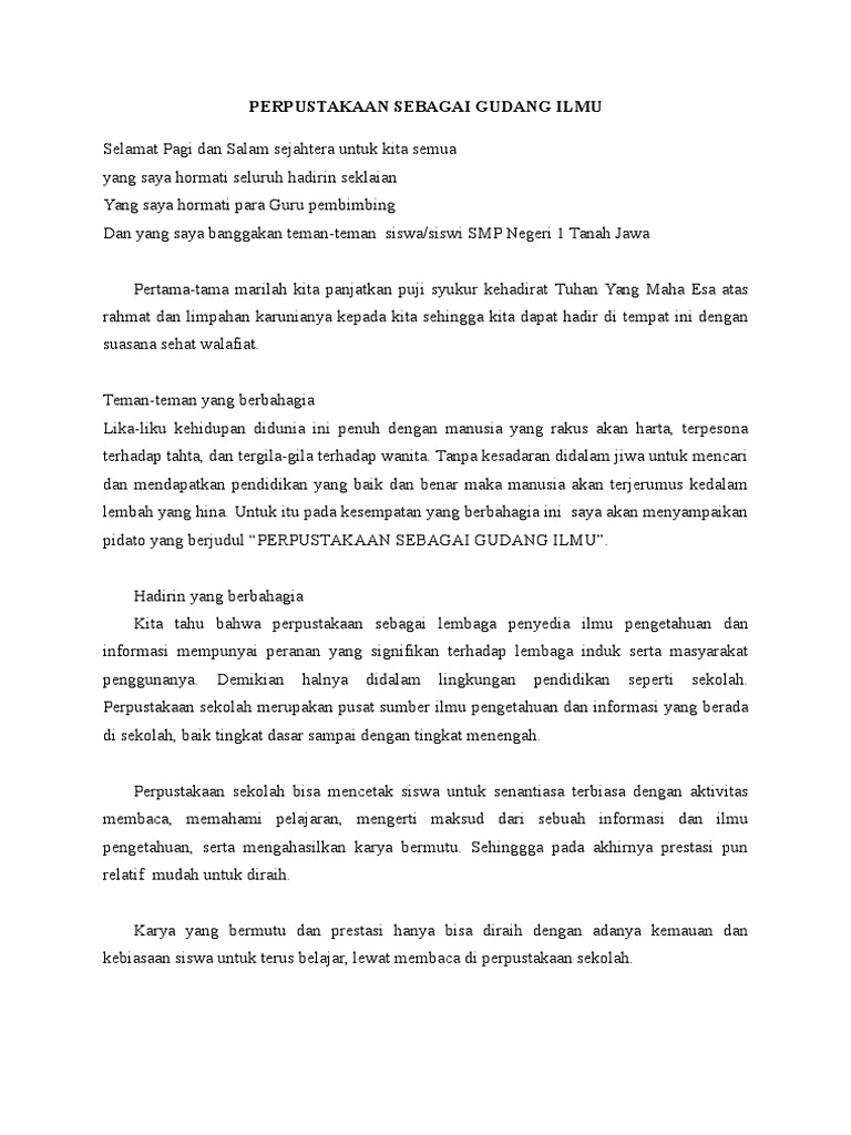 Pidato Bahasa Indonesia Pemberdayaan Perpustakaan Sekolah