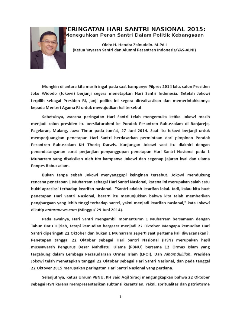 Pidato Tentang Santri dalam Peringatan Hari Santri Nasional Tahun …