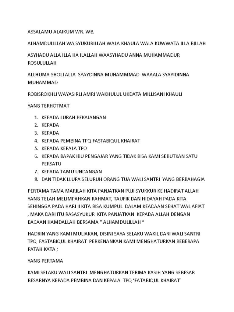 Contoh Teks Pidato Sambutan Wali Santri | Contoh Soal Dan Materi …