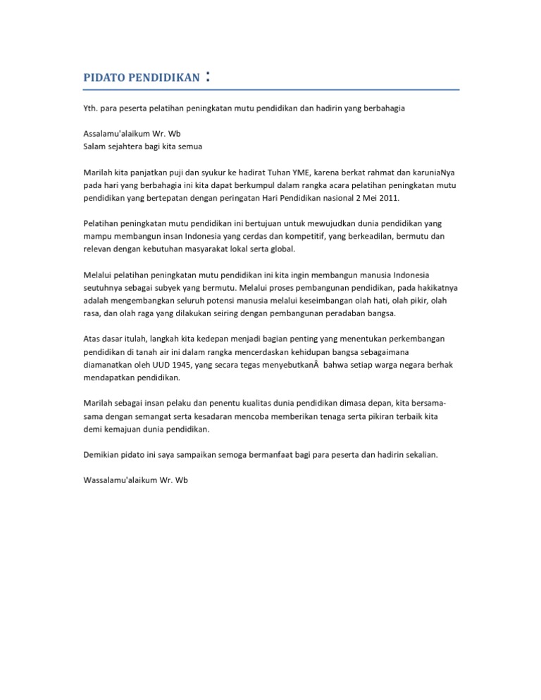 DOC) Contoh Pidato Singkat Pendidikan | indah mokobombang - Academia.edu