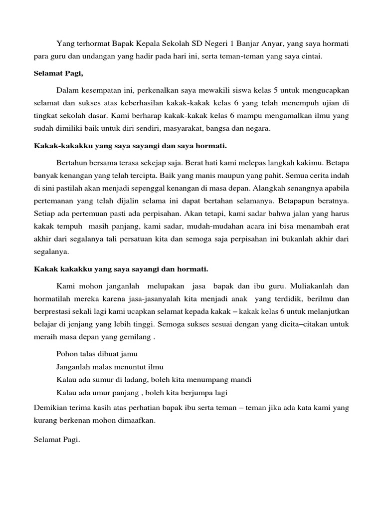 Pidato Kelas 5 Sd Perpisahan