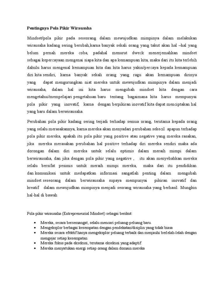 Makalah kewirausahaan mindset entrepreneur