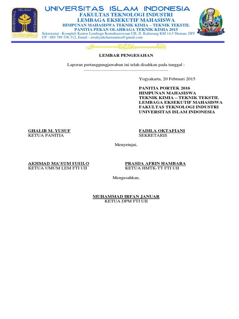 6 Contoh Lembar Pengesahan Proposal, Laporan Kegiatan, Penelitian, Karya Ilmiah – Mamikos Info