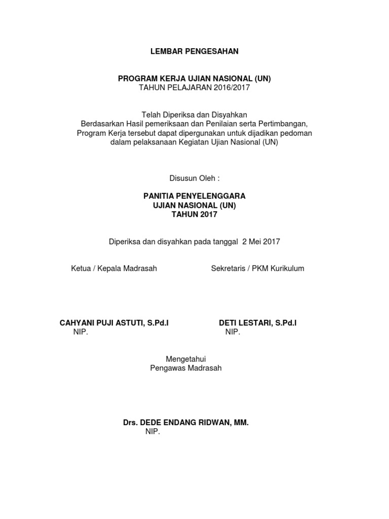 Lembar Pengesahan Ujian Un 2016-2017