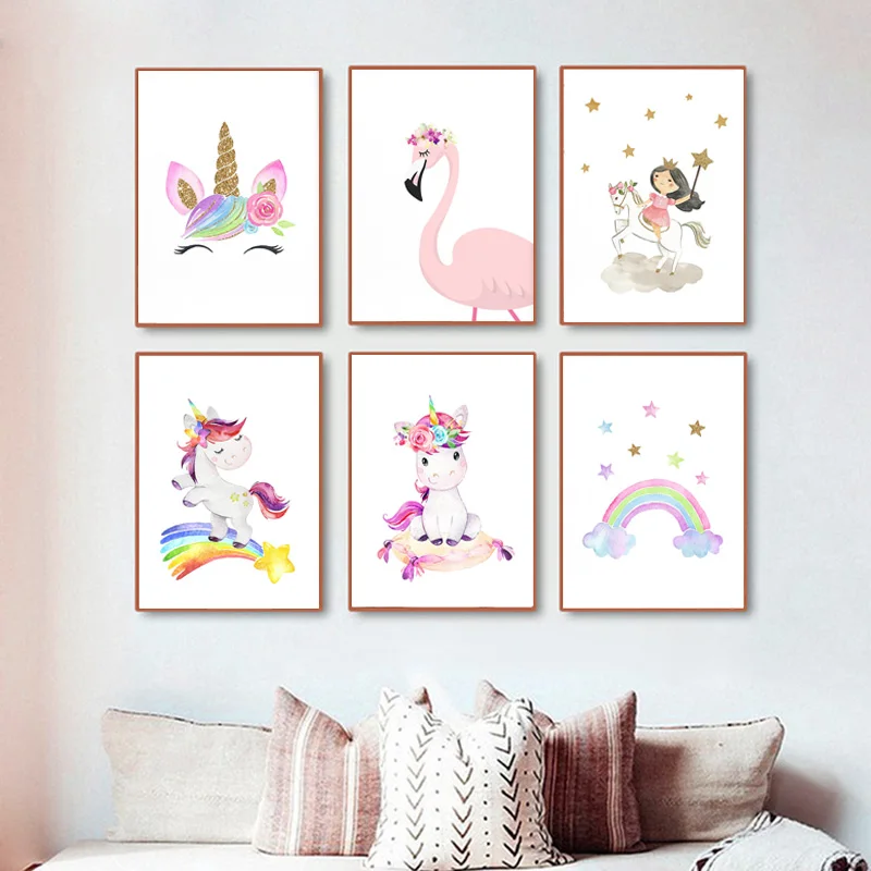 Flamingo Merah Muda Putri Kuda Putih Kanvas Lukisan Kamar Bayi Kamar Tidur Perempuan Poster dan Cetak Nordic Anak anak Dekorasi Kamar Anak|Painting & Calligraphy| - AliExpress